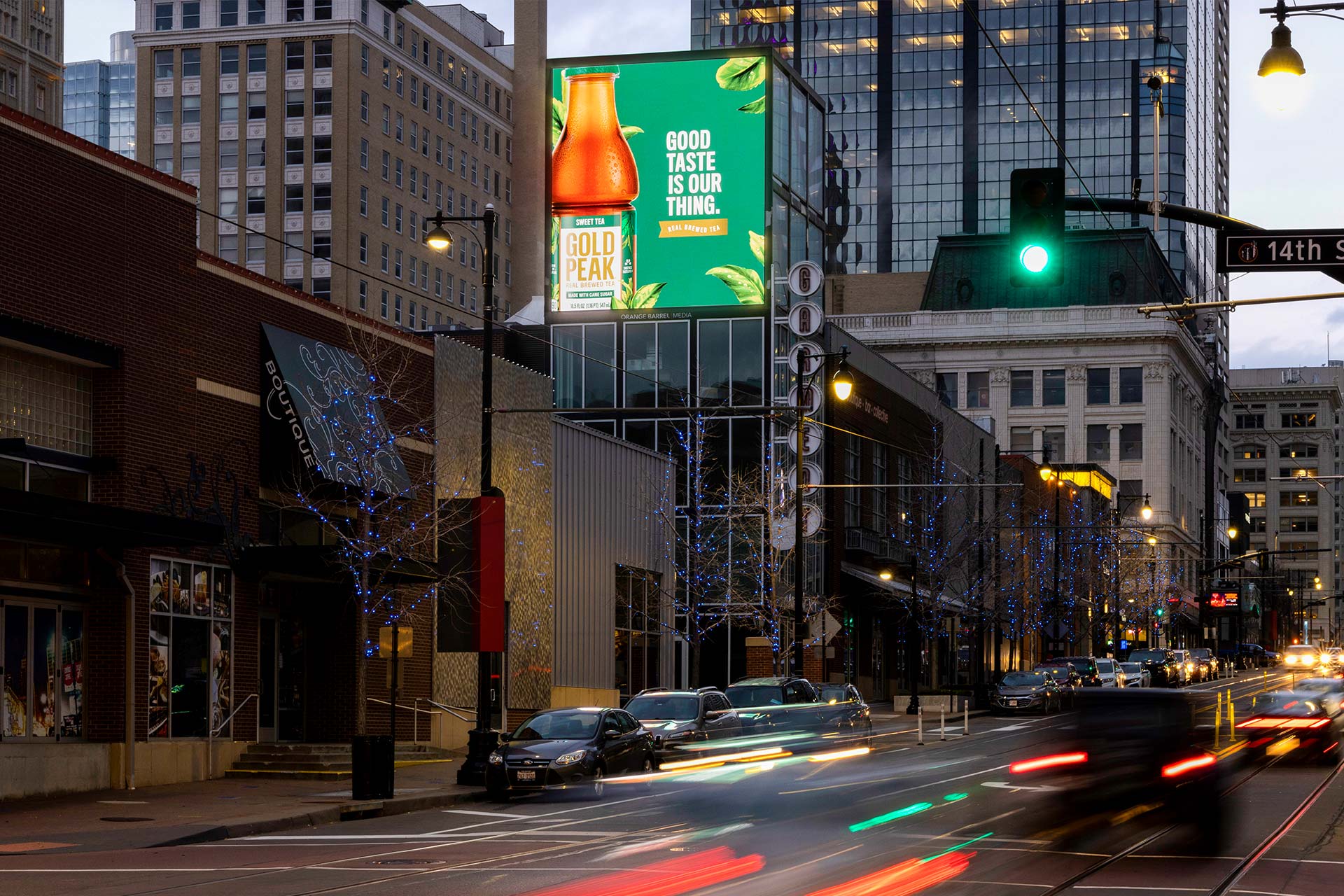 OBM developed a series of media opportunities that contribute to the vibrant sense of place in the Power and Light District. We have four digital screens located in the premier area of Downtown Kansas City, including a dual-sided display, and another horizontal display across from the T-Mobile Center, a multi-purpose arena that hosts high-profile concerts and sports events like the Big 12 Men’s Basketball Tournament every year. An additional spectacular is located on Main St. across from the Kansas City Convention Center.